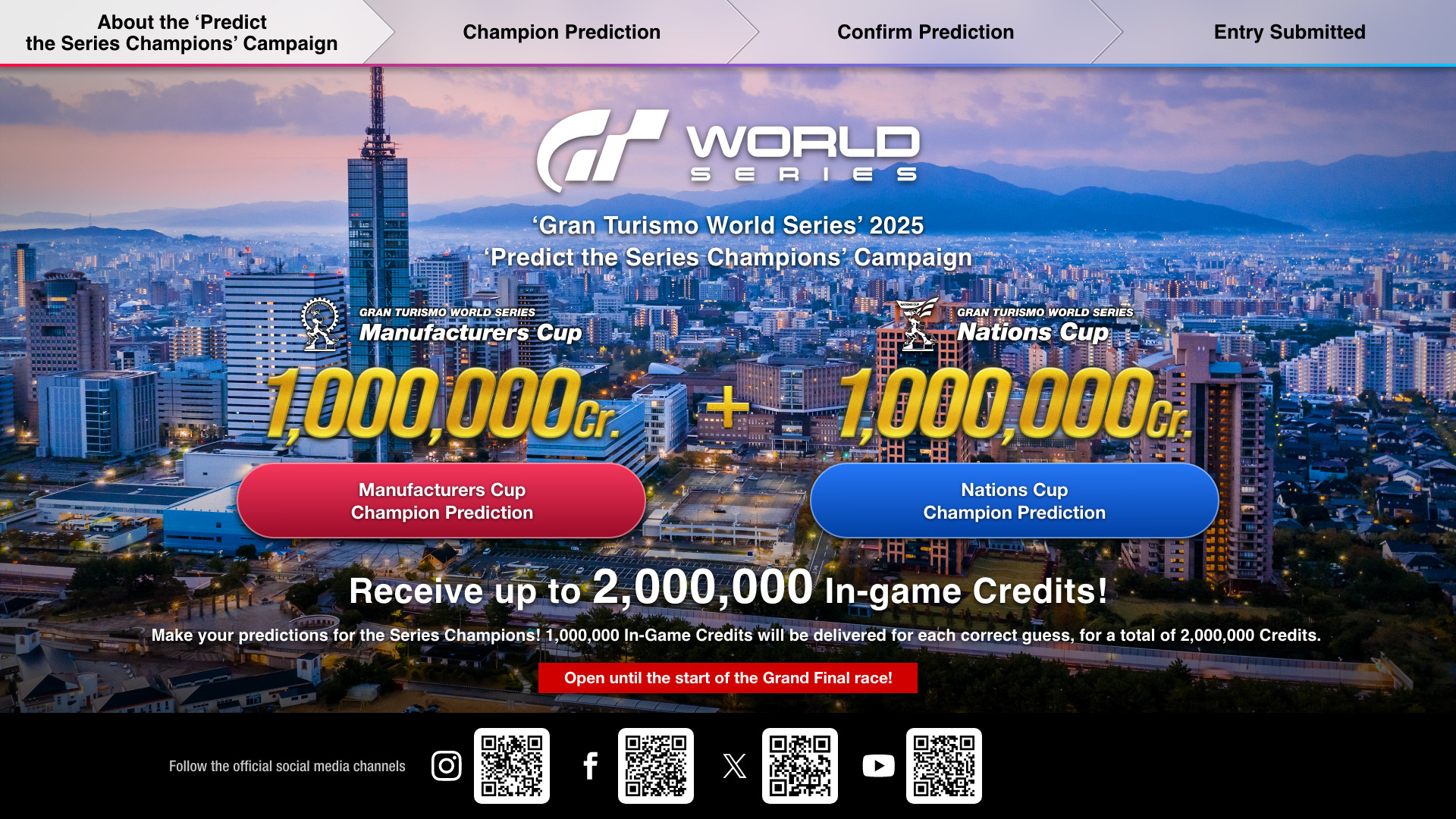 Receive up to 2,000,000 In-game Credits with the Gran Turismo World Series 2025 World Finals – Fukuoka "Predict the Series Champions" Campaign!