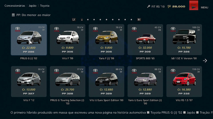 O valor de PP de cada carro pode ser visualizado na seção Concessionárias. Os números atuais de PP de seu carro também são exibidos na Garagem e na tela Configurações do carro, e o resultado dos ajustes que você realizar em "Configurações do Carro" é refletido.