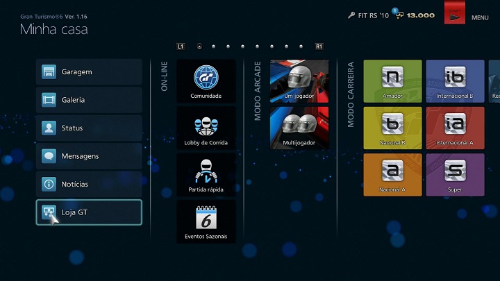 O pagamento de conteúdos da Loja GT é feito usando a carteira da PlayStation®Network e através da PlayStation®Store. Para comprar conteúdos, será necessário entrar na PlayStation®Network e adicionar dinheiro à carteira.