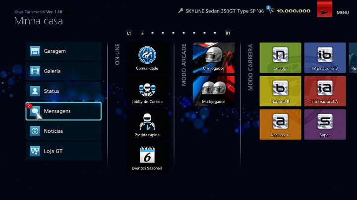 Para usar o recurso de mensagens, inicie sessão na PSN℠ antes de iniciar o Gran Turismo 6. Para mais detalhes sobre o recurso, consulte a página "Mensagens" na seção "Comunidade" deste manual.