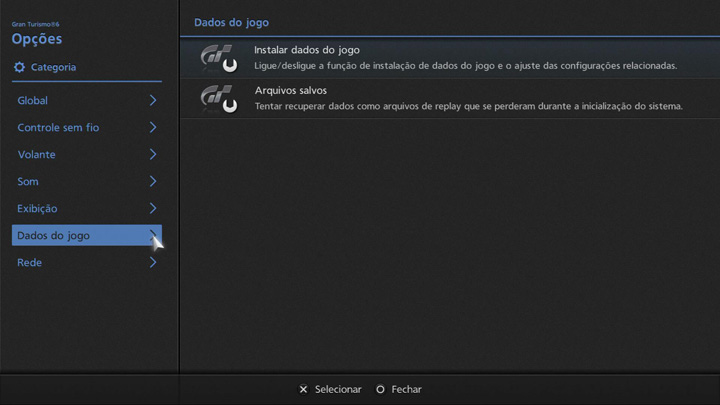 As seguintes configurações relacionadas aos dados do jogo podem ser ajustadas: