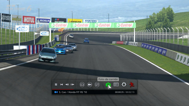 - Congela o replay em determinado momento e entra no modo Foto da Corrida. Para obter mais detalhes, consulte a página "Foto da corrida" na seção "Fotografando".