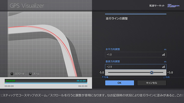 なお記録時の状況により走行ラインに歪みがあると、この調整だけでは改善しないことがあります。その際は併せて「自動フィット機能」をお試しください。