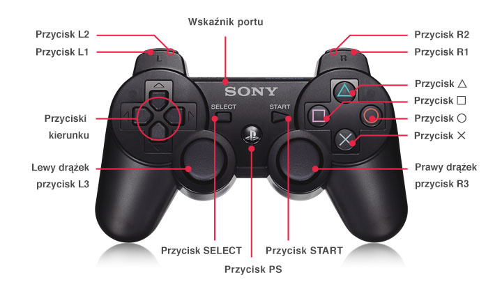 - przycisk PS: Wyjście z gry/zmiana kontrolera/włączenie lub wyłączenie wibracji.