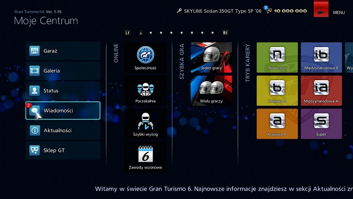 Aby używać funkcji wiadomości, wpisz się do PlayStation®Network przed uruchomieniem Gran Turismo 6.