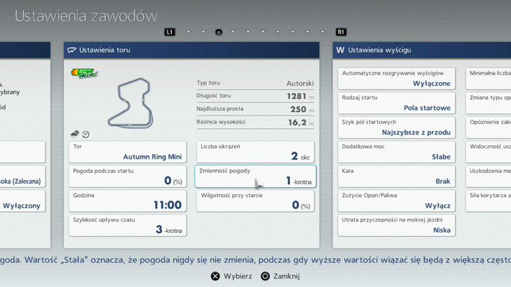 5-1. Ustawienia wyścigu