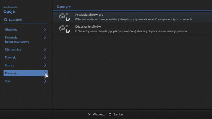 Korzystać można z następujących ustawień dotyczących danych gry: