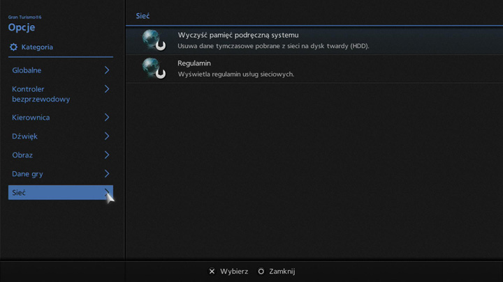 Usuwa z dysku twardego dane tymczasowe pobierane z sieci. Gdy zawody sieciowe lub inne opcje nie aktualizują się należycie, rozwiązaniem tego problemu może być wyczyszczenie pamięci podręcznej. Dane aktualizacji gry, powtórek itp. nie są usuwane.