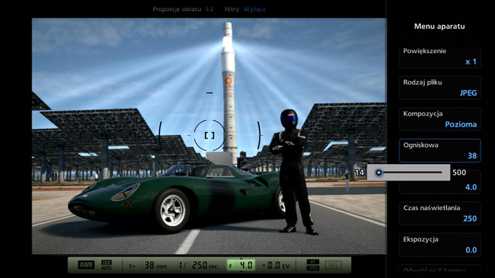 - Panoramowanie (tylko w trybie Zdjęcia z wyścigu)