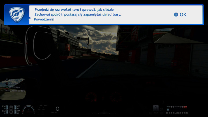 Gdy zaczniesz rozgrywkę po raz pierwszy, otrzymasz wiadomość od Gran Turismo Association z prośbą o podanie imienia. Gdy już to zrobisz, otrzymasz instrukcje, które pozwolą ci poznać podstawy jazdy i poruszania się po grze.