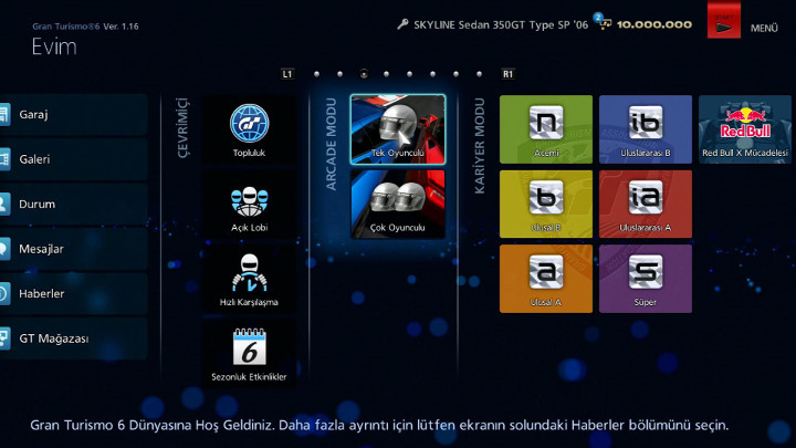 Tek Oyunculu oyun modunuzu seçtikten sonra Hızlı Menü’ye yönlendirilmenizin ardından aşağıdaki seçenekleri ayarlayabileceksiniz. Hızlı Menü ve daha sonraki adımlar ile ilgili ayrıntılar için lütfen "Yarışlar" kısmına göz atın.