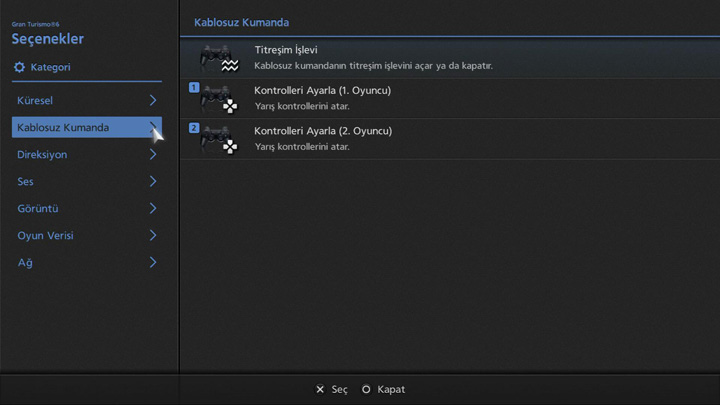 - Kablosuz kumandanın titreşimini açıp kapayın. Titreşim işlevini kullanabilmek için, bir DUALSHOCK®3 Kablosuz Kumanda gerekmektedir.