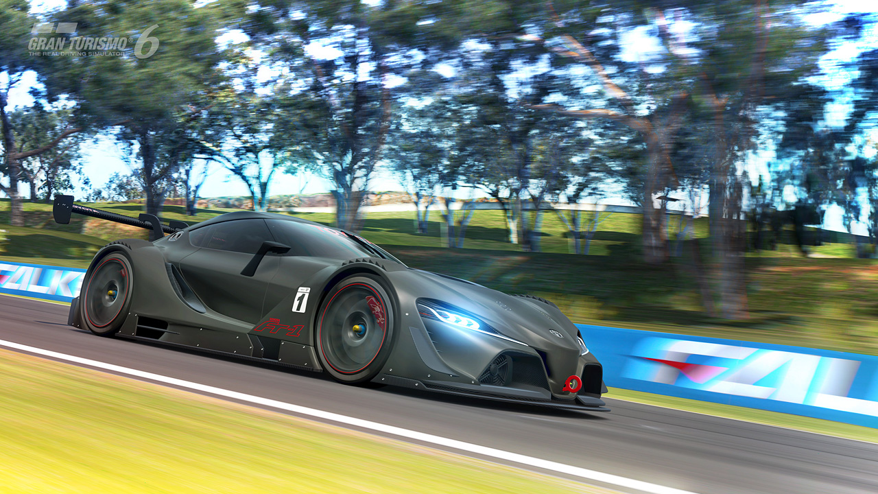 The “TOYOTA FT-1 Vision Gran Turismo” has been released on "Gran Turismo 6", available exclusively on PlayStation®3. The design concept FT-1 is honed to perfection in this rendition to enhance its features and designs required for pure racing competition.