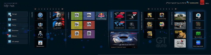 Elke handeling die je kunt verrichten in Gran Turismo 6 is beschikbaar via scherm Mijn huis.
