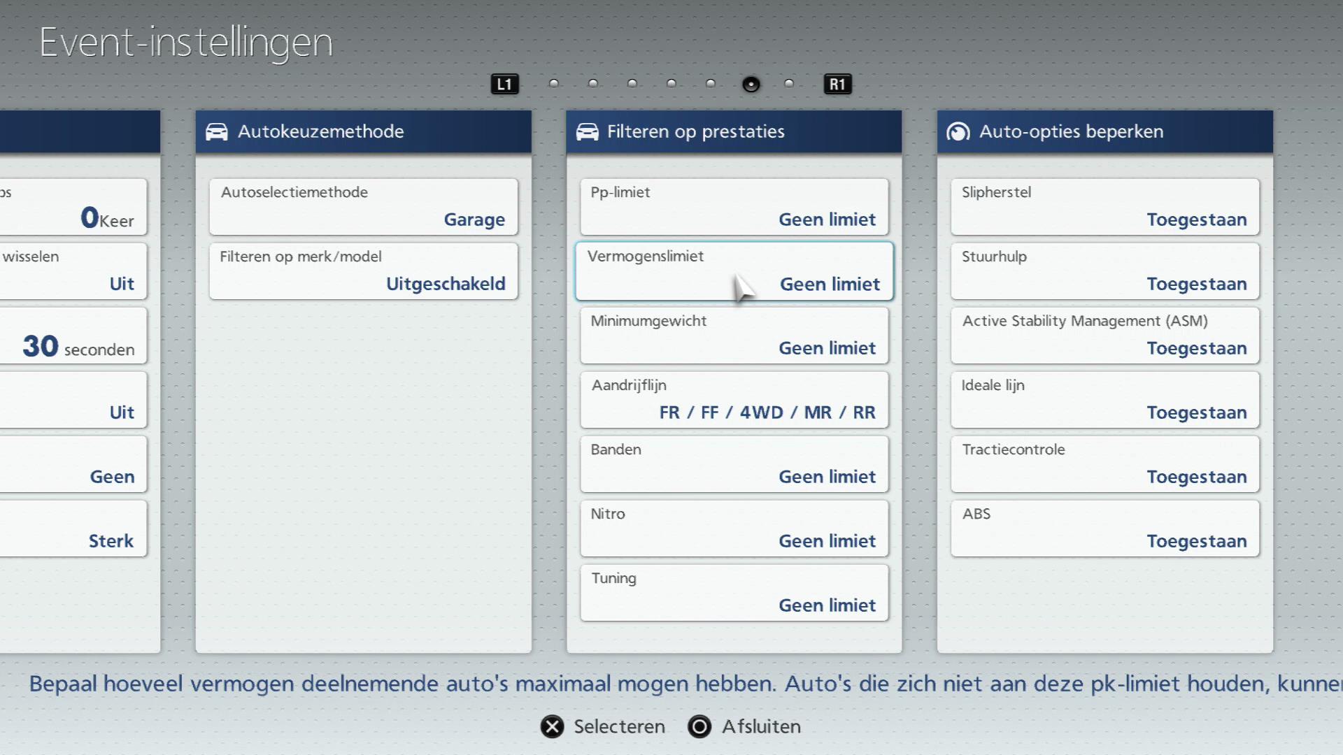 - Bepaal de prestatiepuntenlimiet. Auto's die te veel prestatiepunten hebben, kunnen niet meedoen.