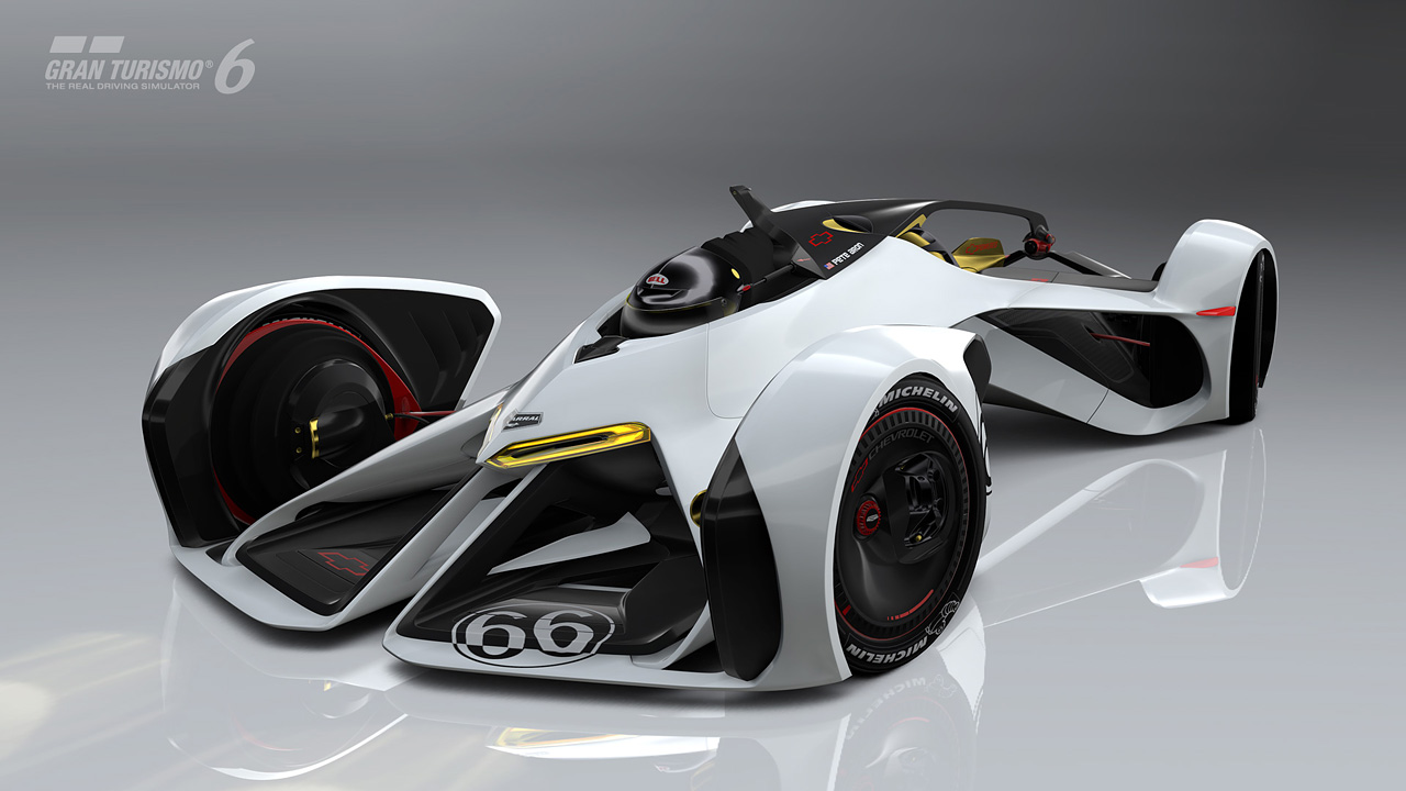 De Chevrolet Chaparral 2X Vision Gran Turismo is uitgebracht voor Gran Turismo 6, exclusief op PlayStation®3. Dankzij een combinatie van een ongeëvenaarde aandrijflijn, een hoogwaardig chassis, toonaangevende aerodynamica en een futuristische rijstijl is dit een sportwagen van de toekomst, op het lijf geschreven van een legendarisch merk dat de autosport voorgoed veranderde.