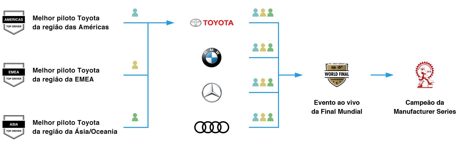 Os melhores jogadores desses 16 fabricantes seguem para a próxima etapa, num total de 48 jogadores na "Final Mundial" (3 jogadores de todas regiões x 16 fabricantes). A "Final Mundial da Manufacturer Series" terá equipes de 3 pilotos da mesma construtora disputando corridas uns contra os outros.