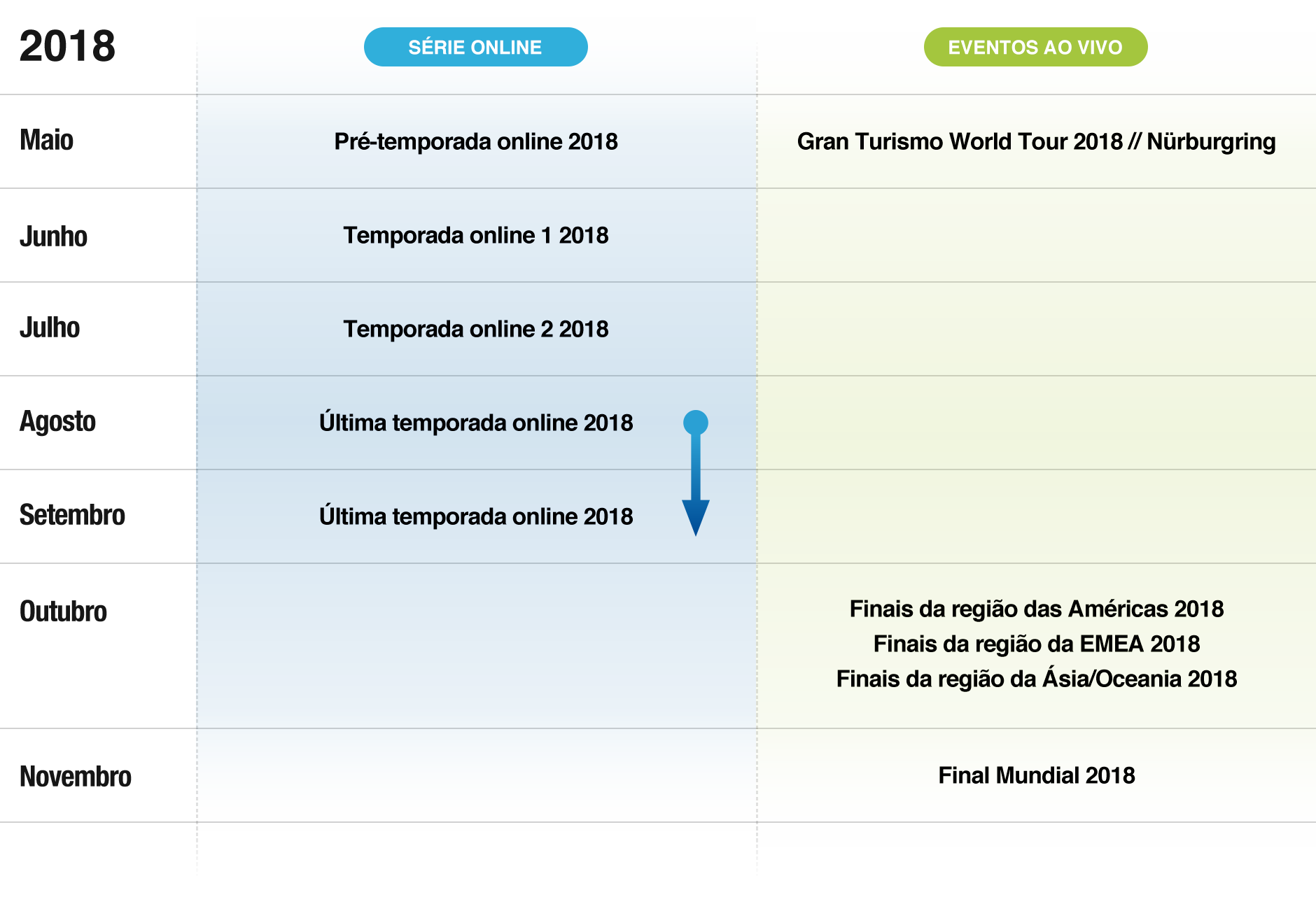 É a série online do Campeonato, realizada no Modo Sport do Gran Turismo® Sport. Teremos uma pré-temporada (maio), as temporadas 1 e 2 (junho - julho) e a temporada final (agosto - setembro).