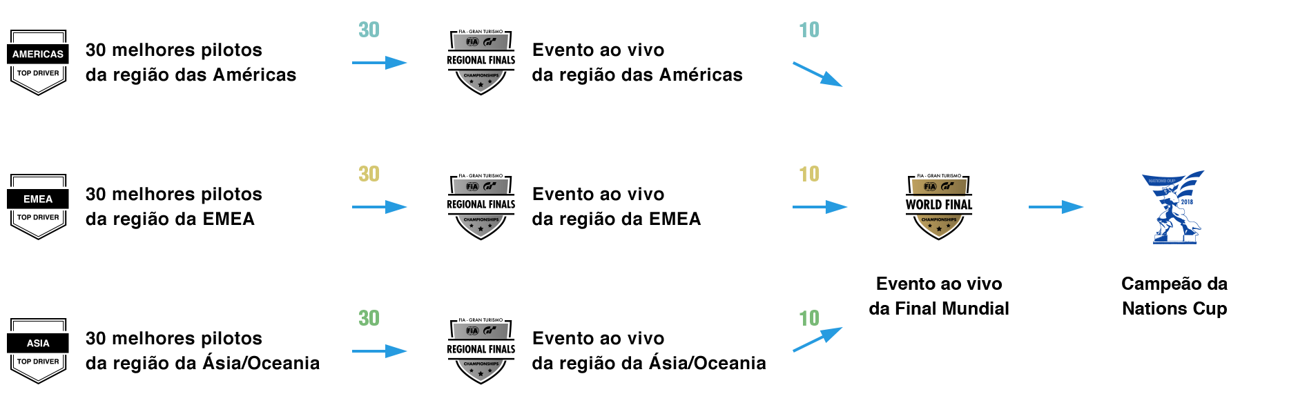 Na Nations Cup, os 30 melhores jogadores do placar da Temporada Final Online terão a oportunidade de avançar para as “Finais regionais da Nations Cup”. No entanto, o número de jogadores de um país (ou local) será limitado, como mostramos abaixo: