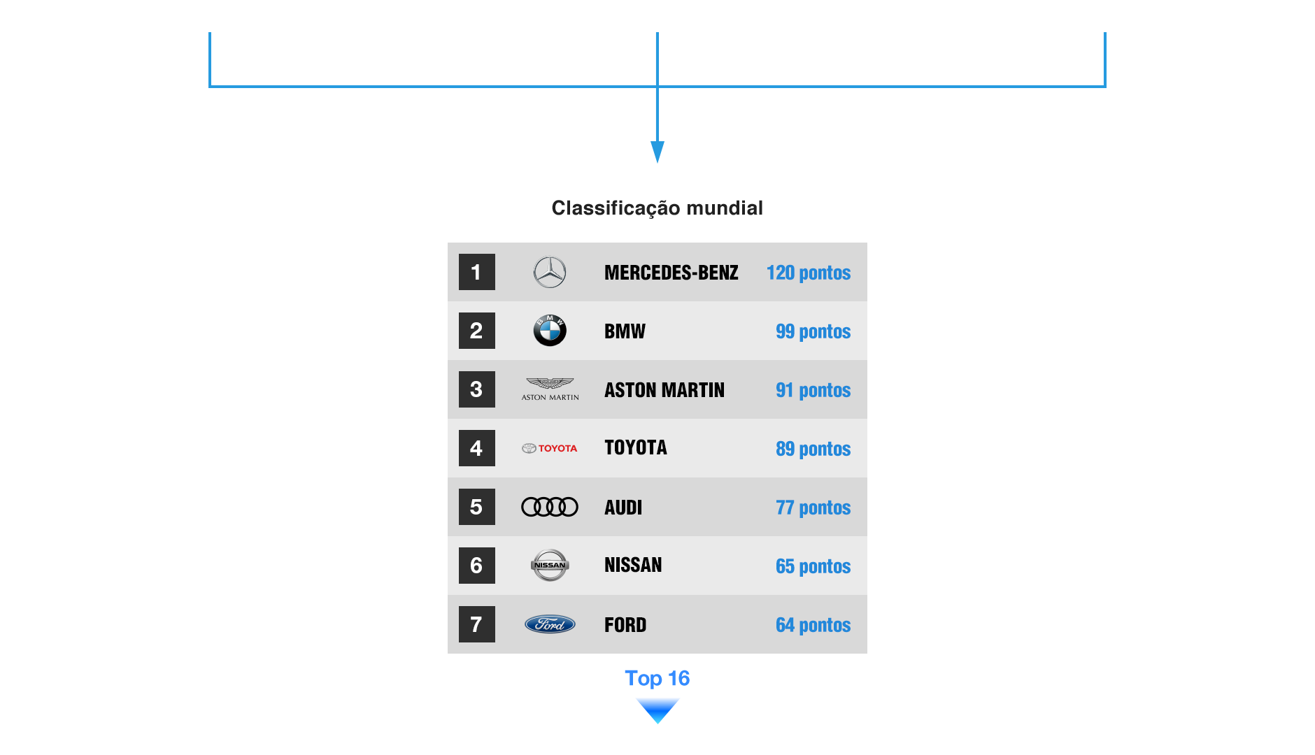 Os pontos serão distribuídos entre as construtoras com base na posição que ocupam na classificação, de acordo com a tabela abaixo.