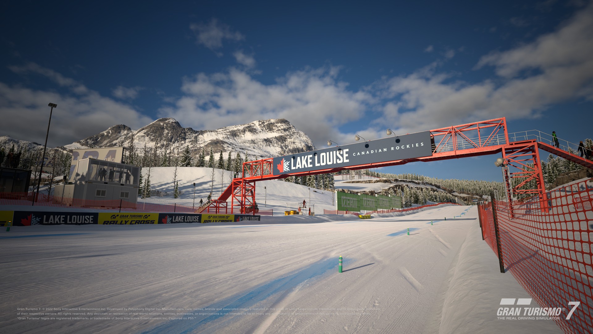 Lake Louise é uma pista original completamente nova projetada em torno de um resort de esqui fictício na base do Parque das Montanhas Rochosas Canadenses, Patrimônio da Humanidade. Há três traçados disponíveis: "Pista longa", "Pista curta" e "Oval triangular", todos com opções de configuração para corridas noturnas. Todos os traçados contêm estradas cobertas de neve, que exigem pneus para neve. Com a adição de Lake Louise, a lista de pistas do Gran Turismo 7 agora soma 116 traçados em 38 locais.