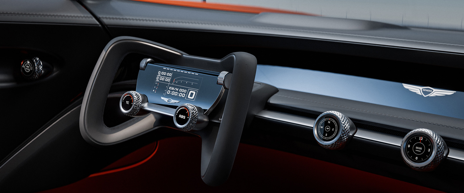 O interior é baseado no conceito da beleza do espaço branco da Genesis, criando um ambiente purista para o piloto. As funções essenciais são priorizadas para maximizar o foco no desempenho na pista.