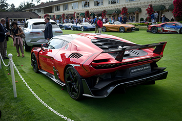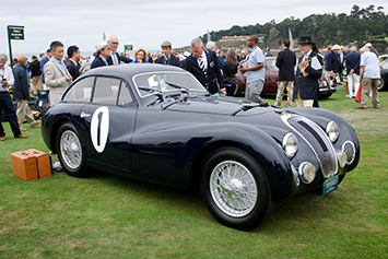 Cette voiture rare troque le charme classique de la carrosserie de la XK140 pour une carrosserie exclusive dessinée par Zagato. Zagato de Milan donne à cette carrosserie un air d'élégance italienne moderne.Sur la scène du parcours de golf de Pebble Beach, on retrouve divers fabricants automobiles qui présentent leurs derniers prototypes et font sensation pendant ce festival automobile estival.