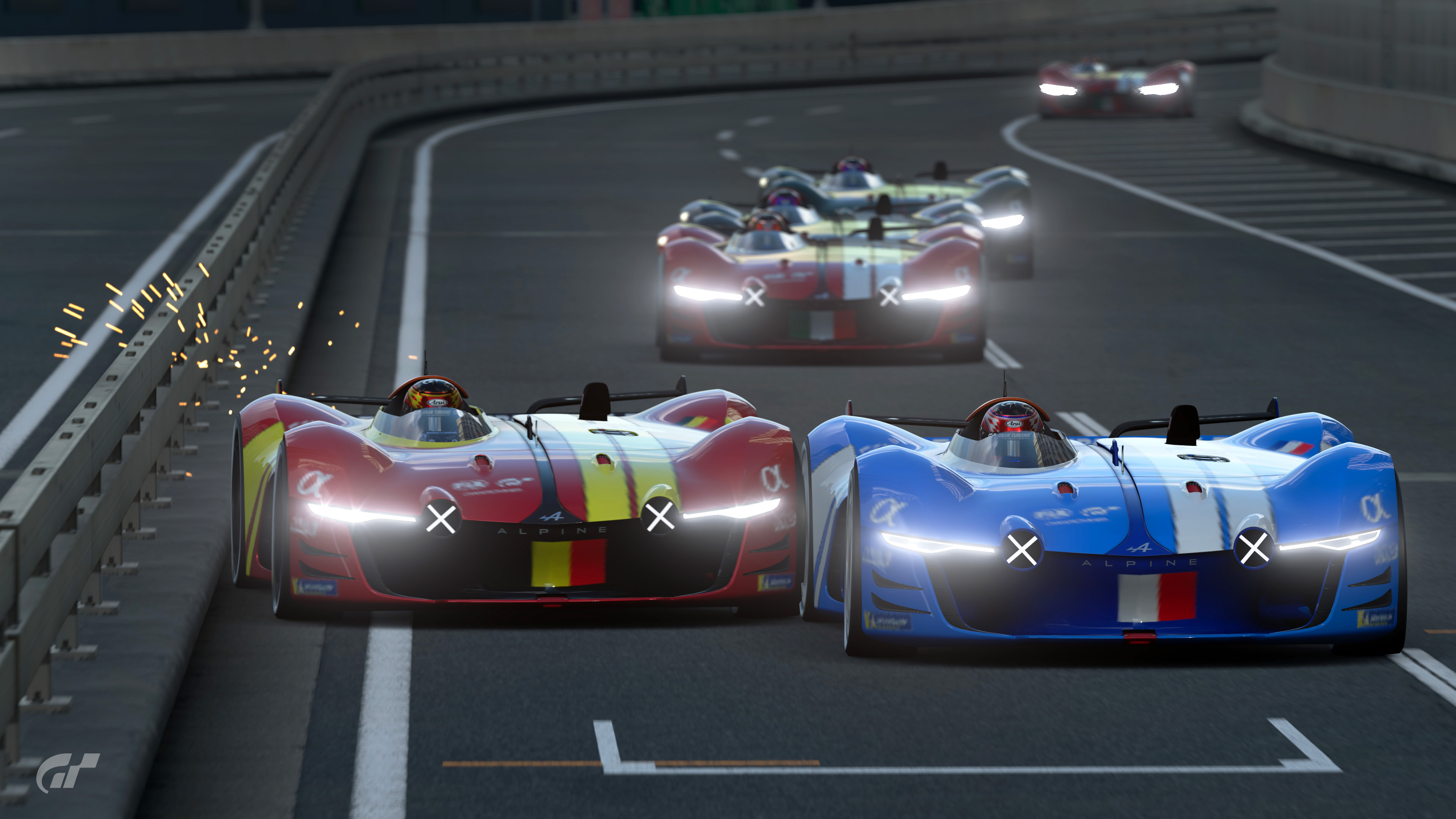 La prima gara è stata uno sprint di 10 giri sull'insidioso Tokyo Expressway - Anello interno sud. Dato che i piloti hanno dovuto compiere almeno un giro sia con le gomme morbide che con le medie, la strategia di sosta ha giocato un ruolo fondamentale. Il più veloce nelle qualifiche è stato lo spagnolo Jose Serrano (PR1_JOSETE), che ha fatto registrare un eccellente tempo sul giro di 1:51.527 al volante della sua Alpine Vision Gran Turismo da corsa. Dietro di lui, in seconda posizione per la partenza lanciata, si è schierato il sempre veloce giapponese Ryota Kokubun (Akagi_1942mi). Il cileno Angel Inostroza (YASHEAT_Loyrot) e il ceco Nikita Moysov (ERM_Nick) sono partiti rispettivamente in terza e quarta posizione. Serrano, Kokubun e Inostroza sono stati gli unici piloti a partire con le gomme morbide. La loro strategia era di accumulare un vantaggio insormontabile prima di passare alle gomme medie.