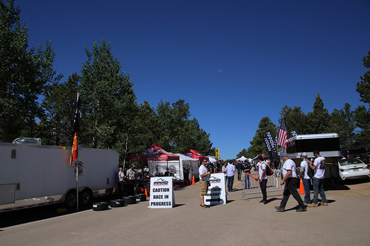 La prima edizione della Pikes Peak International Hill Climb si è svolta nel 1916, cosa che rende questo l'anno del centenario. La foto sovrastante rappresenta il punto d'accesso all'area dei paddock, distante 500 metri dalla linea di partenza.