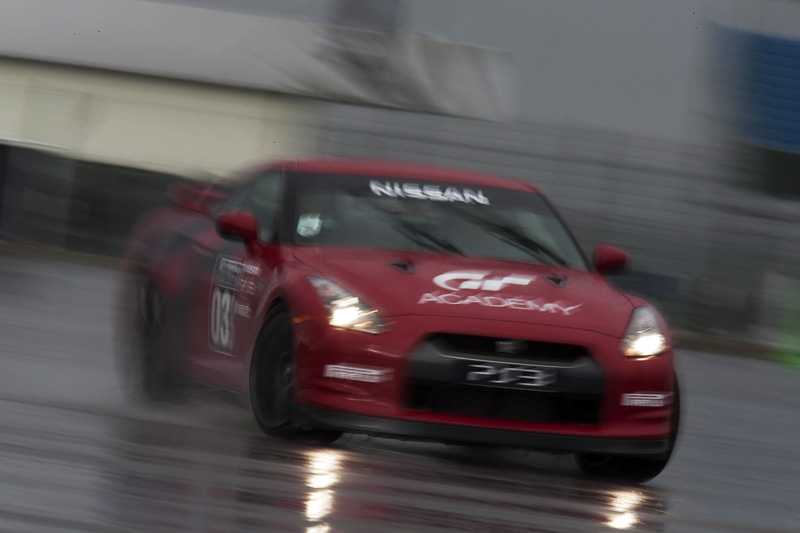 Difficili condizioni meteo hanno salutato i 18 a Silverstone, ma nonostante alcune forti piogge durante la giornata, tutte le attività di guida sono proseguite come da programma. A una competizione sprint nelle 370Z hanno fatto seguito, nel pomeriggio, tre attività separate: una prova cronometrata testa a testa su percorso parallelo sulla strepitosa Nissan GT-R, un test di controllo e derapata sulla 370Z e un giro sul circuito di Stowe sulla 370Z con un istruttore che valutava i progressi dei piloti.