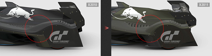 Jeder Rennwagen wird Jahr für Jahr zahlreichen Änderungen unterzogen, Feinheiten werden verbessert und das Gesamtpaket möglichst leistungsfähiger gestaltet. Der X2010 bildet da keine Ausnahme! Gran Turismo und Adrian Newey von Red Bull Racing haben dieses Ausnahmeauto zum X2011 weiterentwickelt.