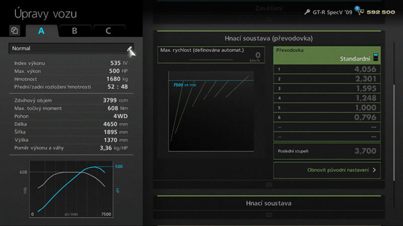 Chcete nainstalovat nějaké tuningové díly? Nebo snad chcete upravit podvozek a převodovku? Pak se musíte podívat na obrazovku Úpravy vozu. Pokud máte potíže s vyhráváním závodů, určitě byste se nastavení vozu měli věnovat.