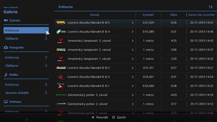 Uložené záznamy jsou uloženy v „knihovně“. Po výběru možnosti „Knihovna“ se na pravé straně objeví seznam záznamů. Po výběru záznamů se zpřístupní níže uvedené možnosti. Více se o činnostech, které lze provádět během sledování záznamu, dozvíte v tomto manuálu v sekci „Záznamy“.