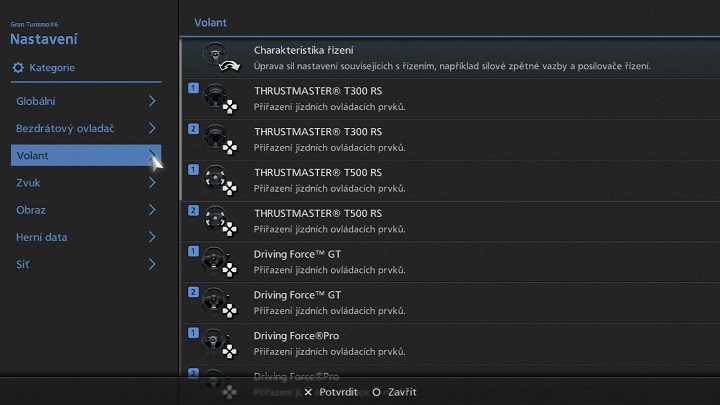 - Umožňuje upravit nastavení funkcí jednotlivých volantů.