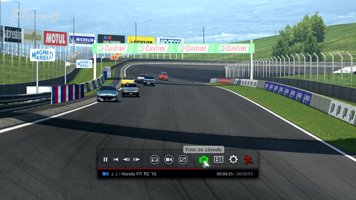 - Po zastavení přehrávání v určitém okamžiku můžete spustit režim Foto ze závodu. Další podrobnosti naleznete na stránce „Foto ze závodu“ v sekci „Pořizování fotografií“.