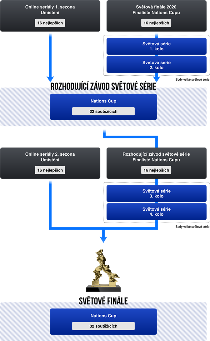 V rozhodujícím závodě světové série obdrží 10 nejvýše umístěných soutěžících a týmů „body světové série“.