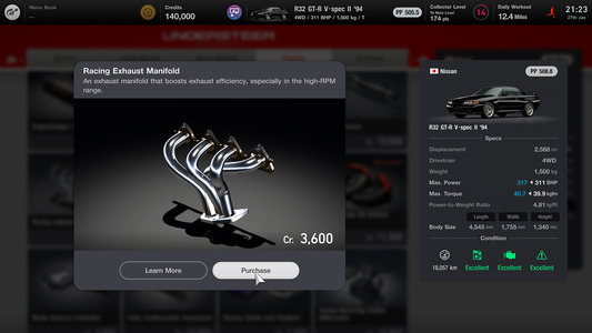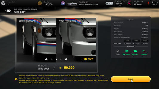 V GT7 se vrací „tuningová dílna“, ve které můžete nakupovat a instalovat vysoce výkonné díly pro zvýšení výkonu svého vozu. Pro každý vůz ve hře je připraveno více než 60 tuningových dílů.