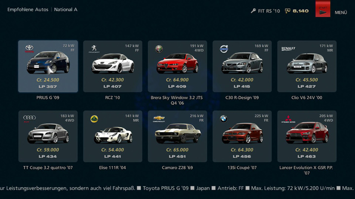 Sie können sich den LP-Wert eines jeden Fahrzeugs beim Autohändler ansehen. Die aktuellen LP-Werte Ihrer Fahrzeuge werden auch in der Garage und unter „Fahrzeugeinstellungen“ angezeigt. Dabei werden auch die von Ihnen in den Fahrzeugeinstellungen vorgenommenen Änderungen berücksichtigt.