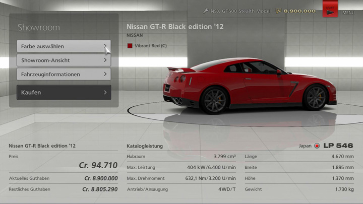 Neben diesen Katalogleistungswerten verfügt jedes Fahrzeug zusätzlich über einen LP-Wert (LP: Leistungspunkte). Der LP-Wert eines Fahrzeugs gibt Aufschluss über sein Leistungsniveau. Eine hoher LP-Wert steht im Allgemeinen für ein schnelles Fahrzeug. Achten Sie darauf, die LP-Werte zu vergleichen, wenn Sie nicht sicher sind, für welches Fahrzeug Sie sich entscheiden wollen.
