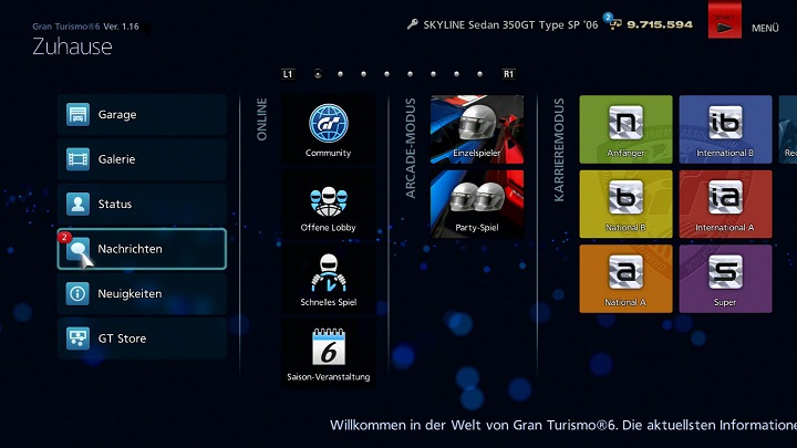 Um die Nachrichtenfunktion zu nutzen, müssen Sie sich im PlayStation®Network anmelden, bevor Sie Gran Turismo®6 starten. Weitere Informationen zur Nachrichten-Funktion erhalten Sie über die „Nachrichten“-Seite im Community-Bereich dieser Anleitung.