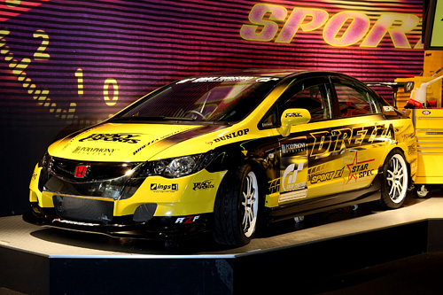 Die als Demo-Fahrzeuge präparierten Autos waren der Lancer Evolution X, getunt von Blitz, und der Honda Civic Type R, getunt von Tracy Sports. Das „Gran Turismo®“-Designteam hat die gelbschwarzen Dunlop-Farben eingesetzt, um die flache, breite Gestalt der Autos zu betonen und den Fokus auf die DIREZZA-High-Performance-Reifen zu lenken. Die Kombination mit den Farbabstufungen lässt das Design noch detaillierter wirken. Beide wirken zwar ähnlich, aber die Individualität des jeweiligen Autos wird durch Einzelheiten wie z. B. die mit Chrom abgesetzte Frontmaske betont.