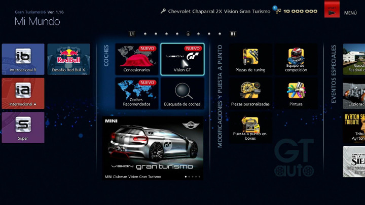 Conéctate a PlayStation®Network y los coches se irán desvelando gradualmente a través de las actualizaciones online de Gran Turismo 6. Selecciona "Vision GT" en la pantalla "Mi Mundo" para hacerte con estos coches. Selecciona uno y pasarás a la Galería, donde podrás elegir un color para el coche y ver vídeos o bocetos.