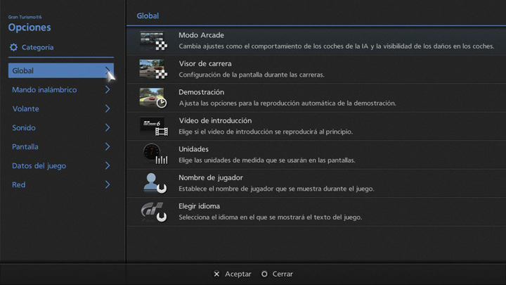 - Cambia ajustes, como la actitud de los coches de la IA y la visibilidad de los daños en los coches.
