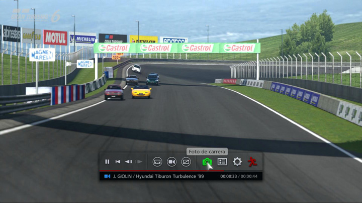 Si estás viendo una repetición desde la opción "Repetición" del menú rápido o viendo una carrera en las salas online, pulsar el botón hacia la izquierda, el botón hacia la derecha o el botón Botón X mostrará una barra de herramientas con las opciones siguientes.