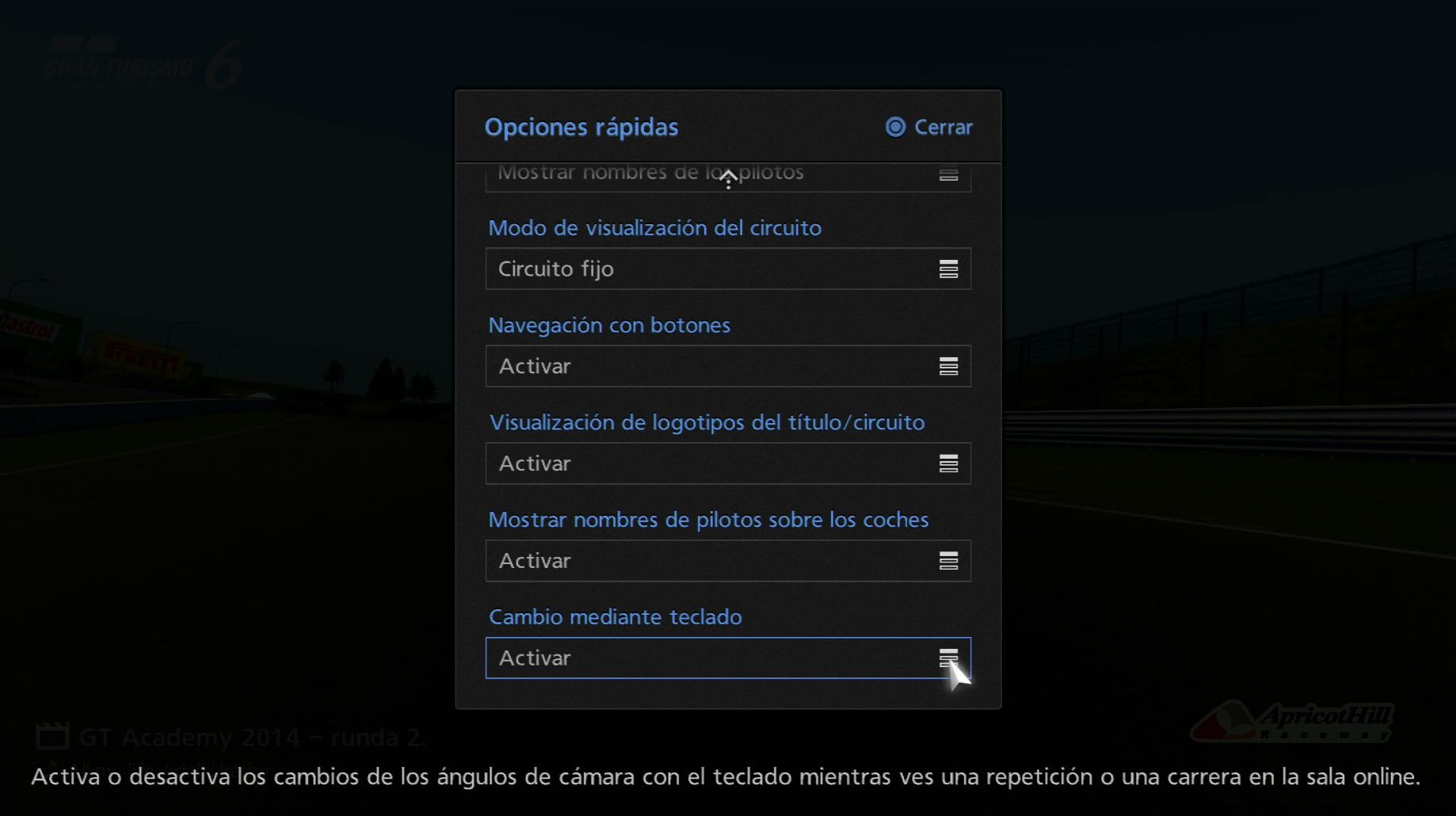 Cuando estés viendo una repetición en el modo Salas online, elegir "Cambio mediante teclado" desde la barra de herramientas te permitirá cambiar la cámara y la información mostrada con el teclado. Conecta un teclado USB o similar a tu sistema PlayStation®3 para usar esta característica.