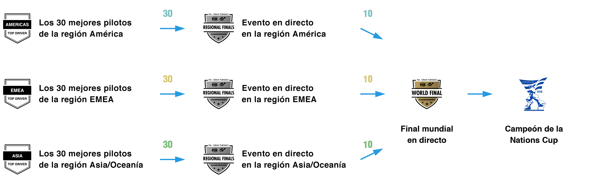 En la Nations Cup se celebrará una final regional en cada región en la que se decidirán los líderes de cada una.