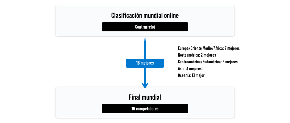 Los mejores competidores según los resultados finales al término de la Clasificación mundial online quedarán seleccionados bajo los siguientes criterios: