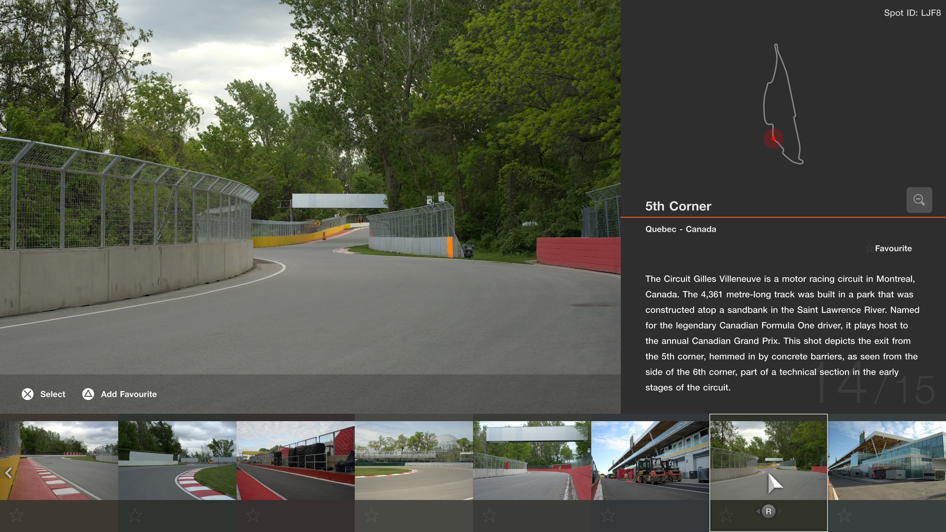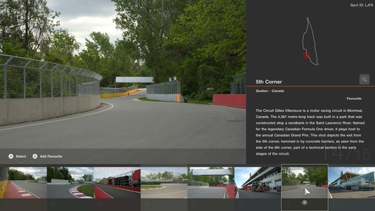 El histórico circuito Gilles Villeneuve, cuyo nombre es un homenaje a la vida y logros del difunto piloto canadiense de Fórmula 1 homónimo, se inauguró en la ciudad canadiense de Montreal, en Quebec, en 1978. Cuenta con varias curvas consecutivas a la derecha y a la izquierda en las que los pilotos deberán escoger el trazado correcto y coger ritmo. La última chicane es una sección famosa por su dificultad que desemboca en el Muro de los Campeones, cuyo apodo se debe a que tres campeones chocaron contra el muro en el Gran Premio de Canadá de F1 en 1999.