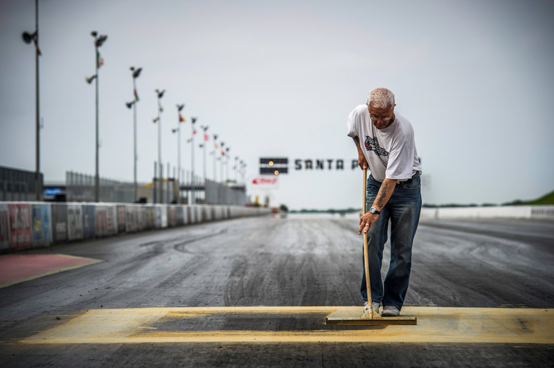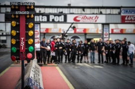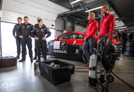En Santa Pod el ejercicio fue un poco distinto. Se pusieron a prueba las reacciones y sensaciones de los competidores en carreras de aceleración cara a cara con el Nissan 370Z en la pista resbaladiza.