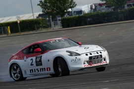 El resto del día tuvo dos partes. Tres de los grupos regionales se dirigieron al cercano Santa Pod Raceway, el circuito de aceleración del Reino Unido. Los demás se quedaron en Silverstone y disfrutaron de las delicias de la tracción trasera del 370Z sobre un circuito en forma de 8 para practicar su control del vehículo.